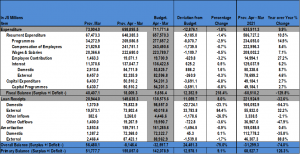 Total Expenditure for the period April 2021 to March 2022 amounted to $698.90 billion, $12.88 billion less than the budgeted amount of $711.77 billion. Recurrent expenditure which totalled $648.39 billion, accounted for 93% of overall expenditures. Under the recurrent expenditure categories for the review period, the category above the budgeted amount was ‘Interest’. This totalled $137.05 billion, 0.5% above the budgeted amount of $136.42 billion. The categories below the budgeted amount included ‘Programmes’ which amounted to $269.59 billion which was $8.07 billion or 2.9% less than budgeted. Comparably, ‘Employee Contribution’ totalled $19.07 billion, which was $629.80 million below the budgeted amount of $19.70 billion. ‘Wages and Salaries’ totalled $222.68 billion, 0.5% less than budgeted. Additionally, ‘Compensation of Employees’ totalled $241.75 billion, which was 0.7% below the budgeted amount.