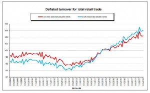 The February increase in retail trade volume was due to rises of 0.9% for automotive fuel and of 0.8% for “Food, drinks and tobacco”, while non-food products fell by 0.5%. In the EU28, the 0.2% increase in the volume of retail trade was due to rises of 1.0% for automotive fuel and of 0.8% for “Food, drinks and tobacco”, while non-food products fell by 0.5%.  As stated by Eurostat, “among Member States for which data are available, the highest increases in the total retail trade volume were registered in Estonia (+2.0%), Belgium (+1.6%), Malta and Poland (both +1.5%), while the largest decreases were observed in Latvia and Romania (both -2.3%) and Austria (-1.5%).”